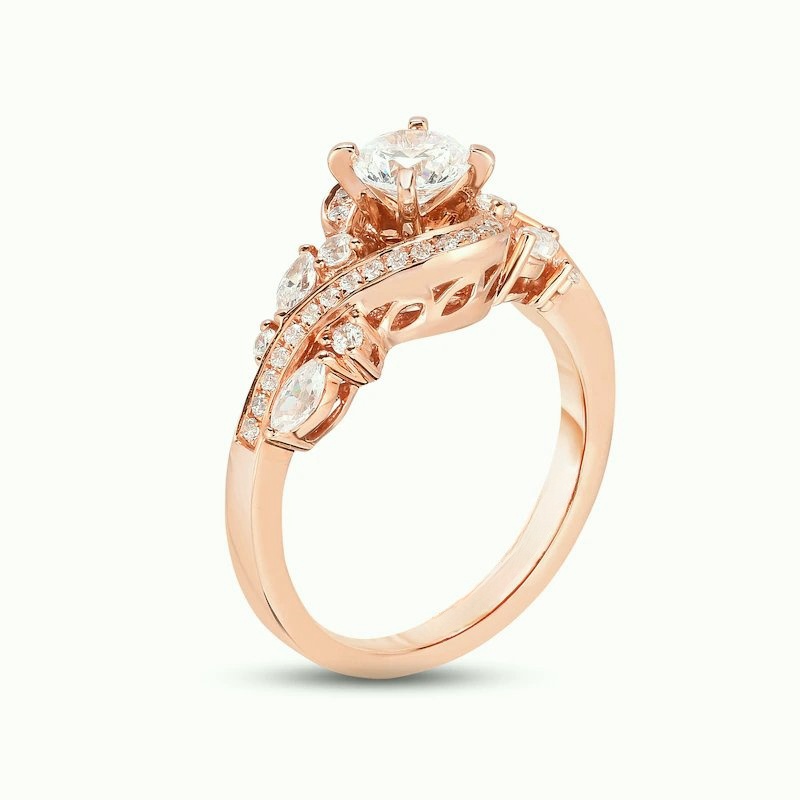 Diamond Engagement Ring 1 ct tw Round & Marquise-cut 14K Rose Gold