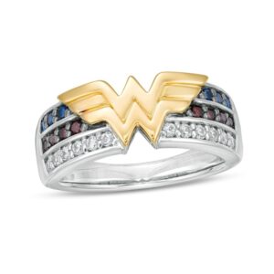 Garnet and Blue Sapphire Symbol Ring in Sterling Silver and 10K Gold :Garnet and Blue Sapphire Symbol Ring in Sterling Silver and 10K Gold